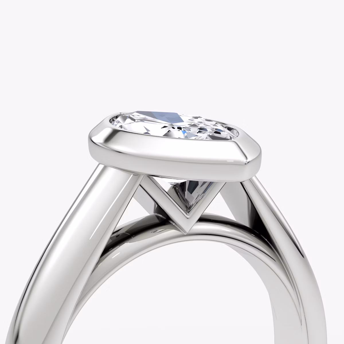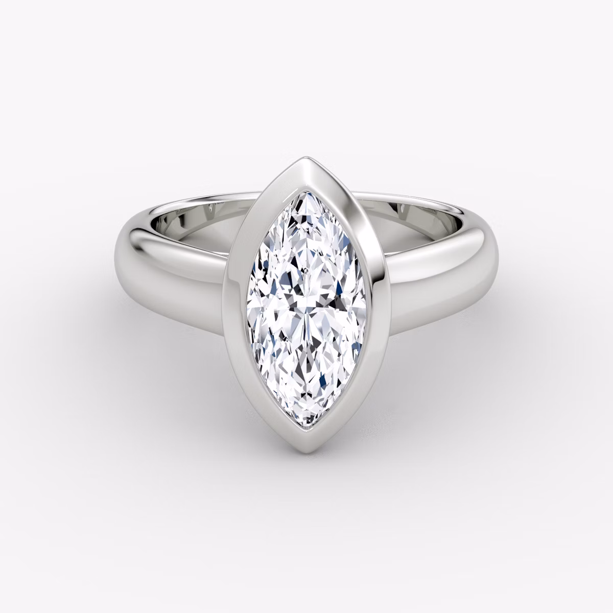 The Sculpture Bezel solitaire in 18k white gold with a marquise diamond